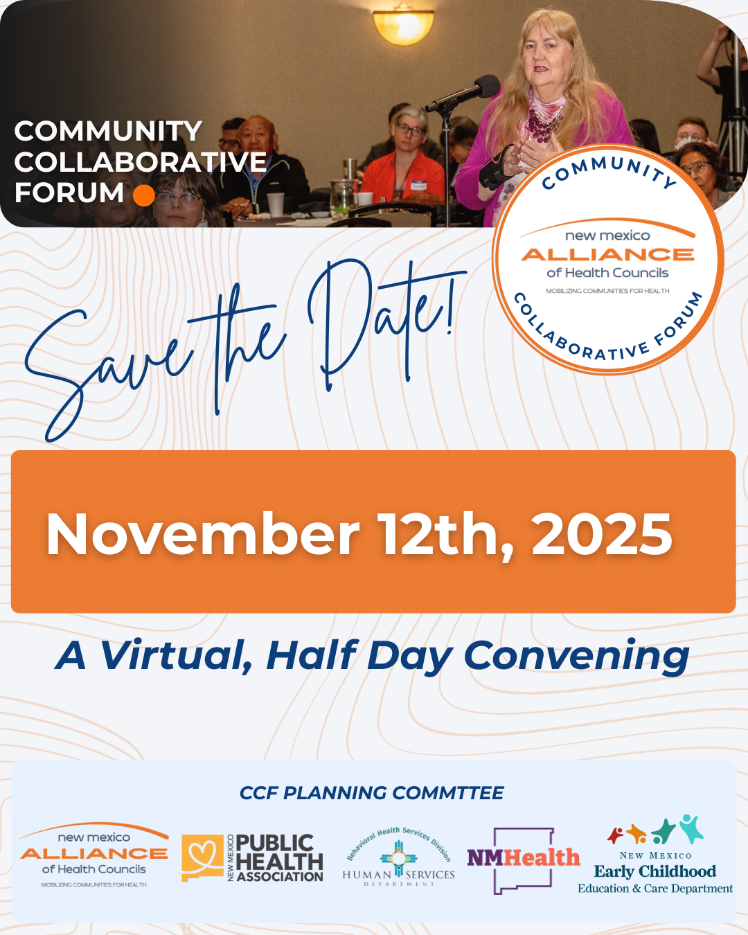 The Community Collaborative Forum was seeded by The Alliance in 2023, and together with the NM Public Health Association, Early Childhood Education & Care Dept., Behavioral Health Division, & Health Promotion Managers serve as the planning committee.